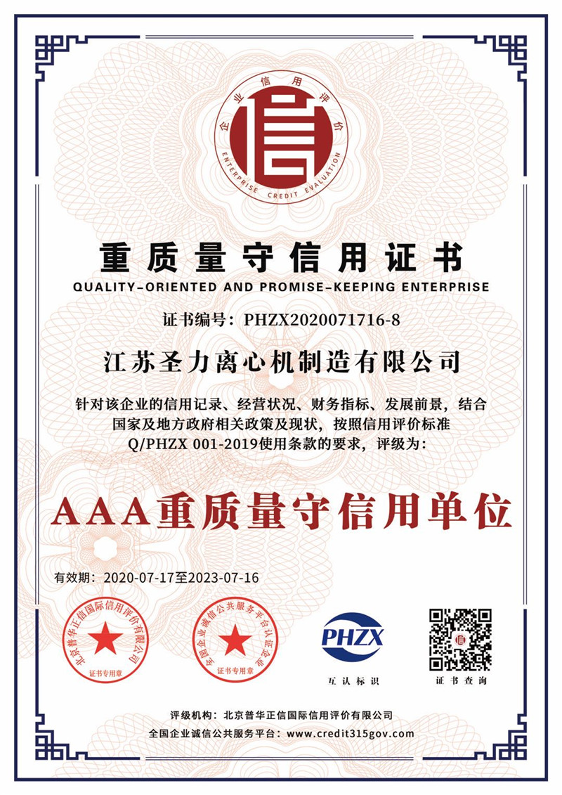 江蘇圣力離心機制造有限公司是國內(nèi)分離機械行業(yè)中主要的離心機生產(chǎn)企業(yè),對離心機的研究、設計、制造有多年的歷史,擁有齊全的設備、完善的檢測手段。公司已通過IS09000國際質(zhì)量體系認證、ISO14001環(huán)境管理體系認證、ISO45001:2018職業(yè)健康安全管理體系認證和CE認證,是江蘇省高新技術(shù)企業(yè),曾榮獲國家和地方多項榮譽稱號。